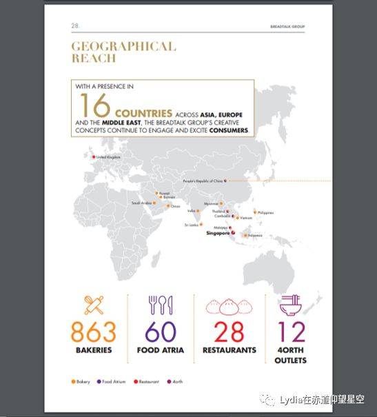 不过你可不要小看BreadTalk,作为新加坡的本土知名品牌,它也是一家上市公司哦,我看一了一下它2018年的年报,2018年营业额是6.098亿新币! 足迹遍布16个国家呢!