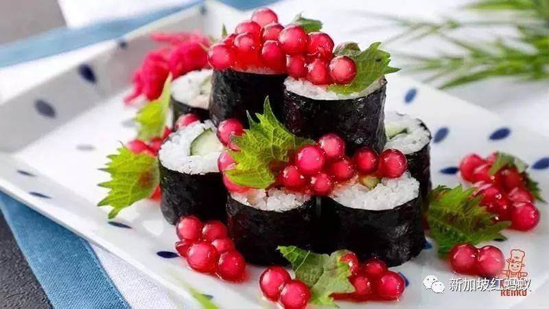 另外也有美食部落客沿着寿司的思路,用红色珍珠取代鲑鱼卵,加在寿司上。远观时,似乎还真的能以假乱真,错看成真的鲑鱼卵耶。