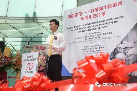 徐芳达以华文发表了致辞。他指出,图展中三个不同时期的图片展示了新中国的教育发展情况。源远流长的中华文化首要推崇的就是教育,早在两千多年前的儒家学派创始人孔子提倡过“有教无类”的教育思想,这对于全体社会素质的提升起到了积极的推动作用。