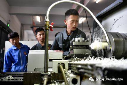 近年来,中国现代职业教育体系初步建立,每年约有280万个家庭的子女进入职业高等院校学习。这是2019年5月23日,青海省工业职业技术学校2019春季机电技术应用班学生在进行数控车削加工实训。