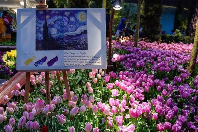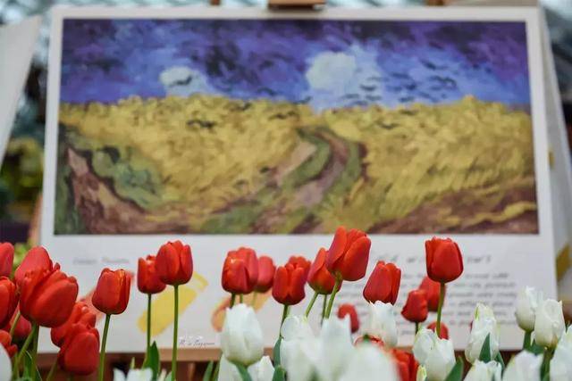 我去时正是4月底,赶上郁金香的花期,满室的郁金香绽放着绚丽的梦境,梵高的画作点缀其中,流动的色彩相得益彰。