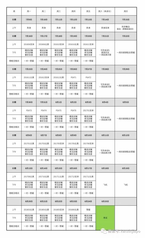 由于SAT每年有多次考试,每个考生参加考试的时间并不相同,所以皇冠SAT为每次考试的同学们专门制定正对性的规划。这个规划包含从考前1.5~2个月开始的冲刺每日任务安排及陪伴安排。