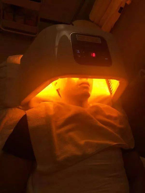 最后再来一个光谱仪照射修复,根据各人的情况决定使用何种照射。红光波长(635nm)修复痘印,疤痕、加速细胞再生。蓝光波长(415nm) 可用于治疗过敏症状,控制炎症。黄光波长 (590nm) 具有美白效果,能够淡化雀斑。绿光波长 (560nm) 具有镇静舒缓,敏感肌适用。