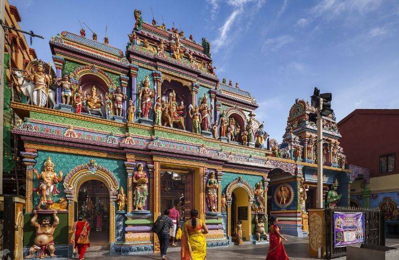 如果对宗教文化感兴趣的话,还可以去小印度知名的几个寺庙和清真寺看看。维拉玛卡里雅曼兴都庙—这座精美绝伦的寺庙是小印度地区的标志性建筑。特殊的彩绘门楼属典型的南印度建筑风格,门上高耸的塔楼上装饰许多立体的彩色神像,庙里则是供奉主掌生死的“卡莉女神”。