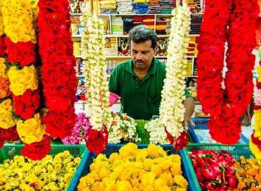 这里最受欢迎的要属花店,色彩缤纷、芳香四溢的花朵汇聚在一起给人以美的享受,店家还把很多花朵编织成一串串花环,若是想去印度庙祭拜礼神的话,这种花环是必备品。另外,这里还有很多印度风味美食,如竹筒椰子米糕、豆粉米包及玫瑰牛奶等印度饮料。