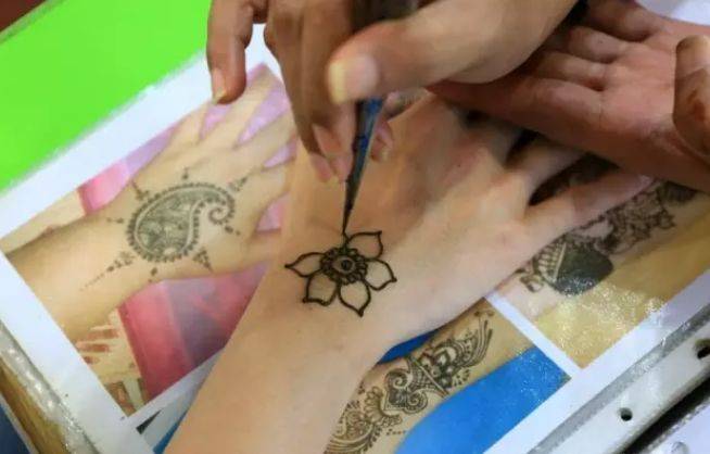印度彩绘(Henna纹身)是用天然染料,在手上或者胳膊上画上艺术图案,一般一周就会自动褪色。在小印度区域里,有许多店提供这样的服务。