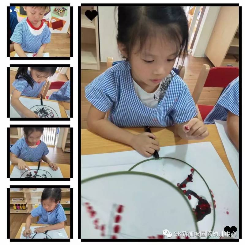 身在多种族聚居的国家,了解各种族的风俗文化也是日常课程的一部分。制作华人传统的梅花扇: