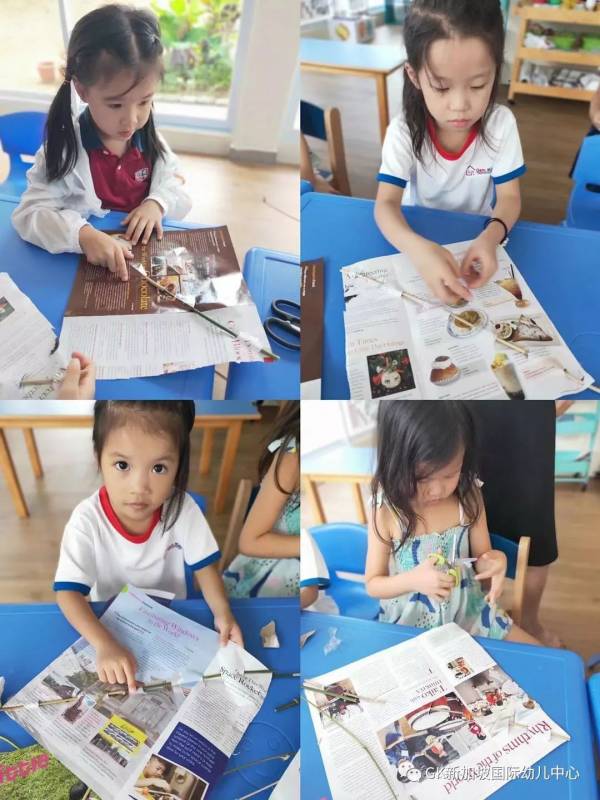 回到大自然,就地取材进行学习也是当地教育的一大特色。小朋友们用院子里的树枝和学校的杂志制作手工风筝。这样的风筝竟然真的飞起来了。