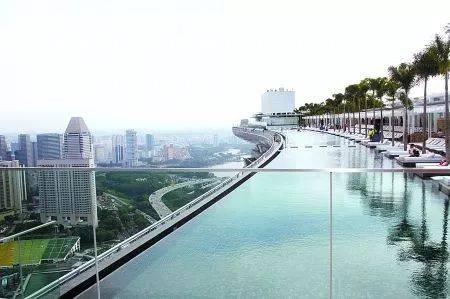 酒店的室外泳池建在滨海湾金沙酒店57层高的塔楼顶层,宾客们可以在游泳的同时,俯瞰新加坡的城市景观。白天去看金沙酒店,觉得平平无奇,不过是现代化高科技产物而已。金沙酒店的美,在夜里。夜色撩人醉,你游嬉于泳池,看着这个城市灯火通明,夜色璀璨,清风徐来,心神荡漾,便觉得人间繁华,不过如此,不得不生出,及时享乐的思想来。