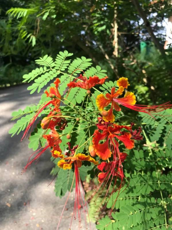 然,花芭山周遭景色不错。绿树环绕,空气清新。粉色的龙船花,黄色的洋金凤,大红色的贞桐花竞相开放,美不胜收。坐在山顶的凉亭里,俯瞰大大小小的岛屿,高楼耸峙的商业区,蜿蜒的公路,大有心旷神怡之感。