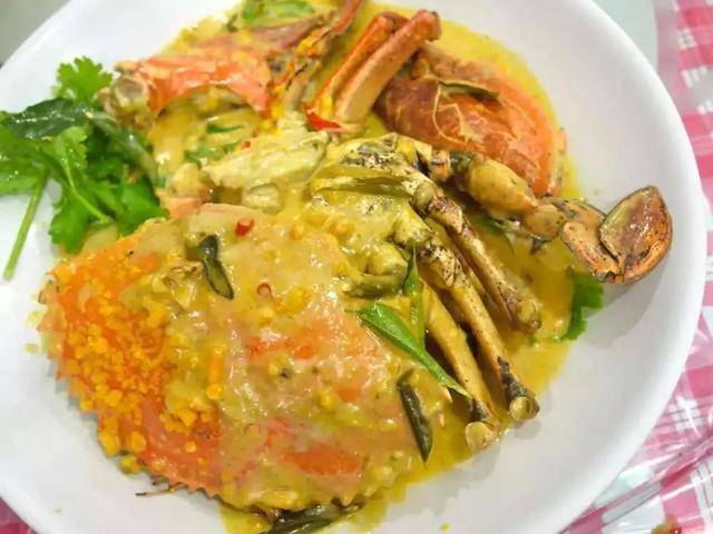 而咸蛋黄螃蟹跟辣椒蟹的热度,可以说的平起平坐的了,通常不吃辣的人,都会点咸蛋黄螃蟹。口味好,还非常有东南亚的特色呢~