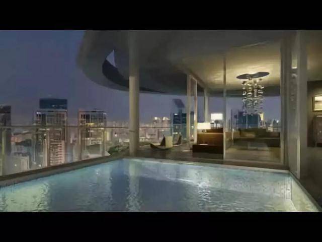 它是六角形的结构,这样的设计确保了每间公寓都能看到周围地区的全景,公寓内还有一个水上公园呢~