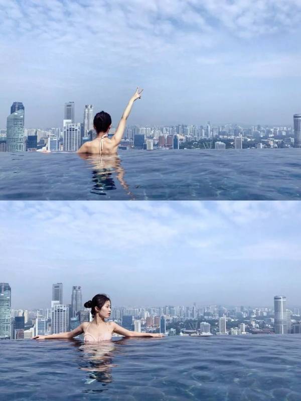 早起去无边泳池拍照,不会游泳的两个人再次在泳池里拍拍拍,之后退房步行前往网红酒店丽思卡尔顿美年。寄存行李后打车前往odette。