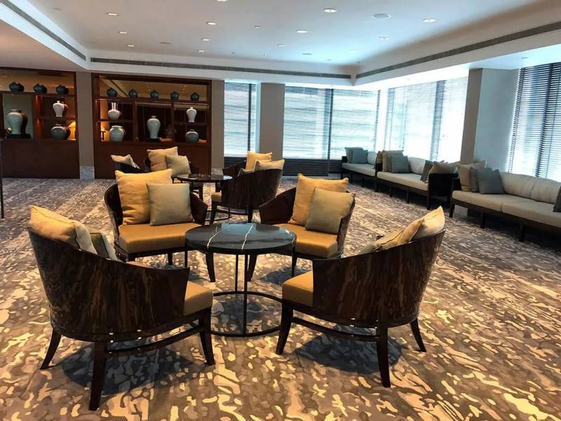 几何感、线条感十足的大堂,走进来便有一种时空交错的穿越感;