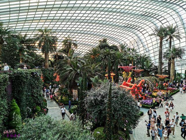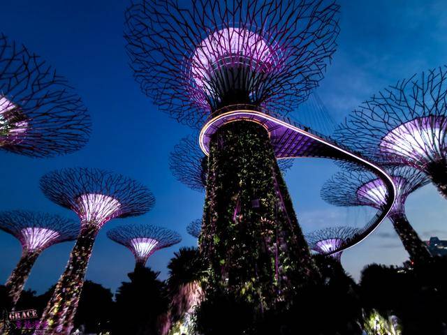 滨海花园超大的建议这里要多排点时间,我买的是花穹(Flower Dome),云雾林(Cloud Forest)以及空中走廊(OCBC Skyway)套票价格是台币686元,如果要晚上才走空中走廊要白天先去拿号码牌,我们晚上去就大排长龙上不去只好放弃空中走廊的门了。