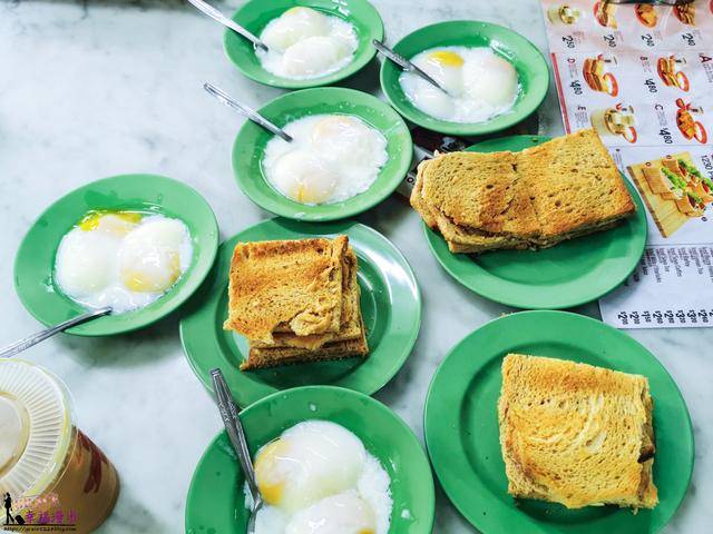 人多的好处就是可以各点一种口味彼此分享啊!咖椰吐司+水波蛋+奶茶就是当地最有特色的早餐喔!