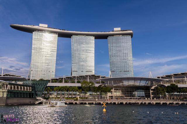 从鱼尾狮公园的对面就是海湾舫区,眺望金沙酒店和莲花造型艺术博物馆。
