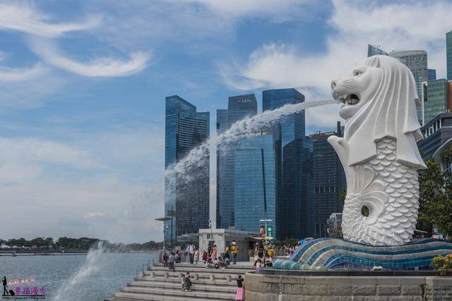 吃完早午餐后因为昨天也走太多路了就决定搭乘计程车到鱼尾狮公园,计程车车资好像是15元新币,一群人一起分担其实也划算啊!新加坡的著名地标鱼尾狮,来到这里大家必拍喝水照。