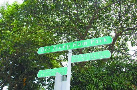 新加坡的街道Oei Tiong Ham Park,便是以他的名字命名。