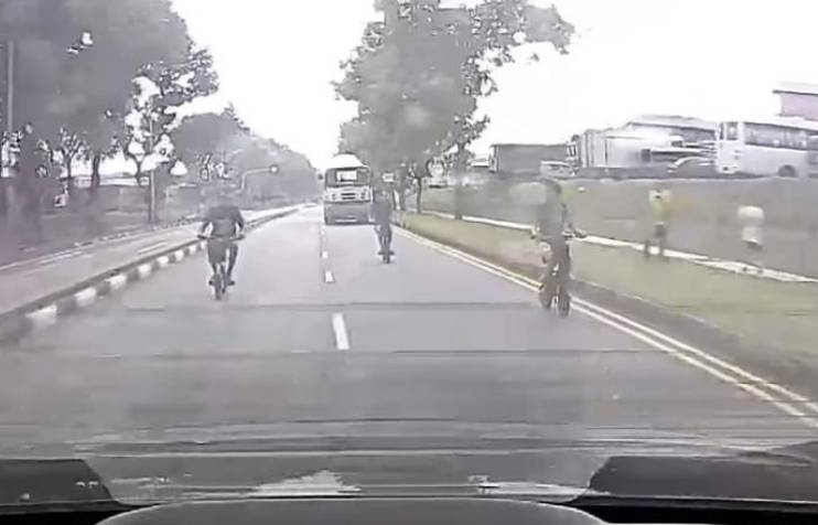 真的是顶风作案!!新加坡三名电动踏板车在公路上公然飙车