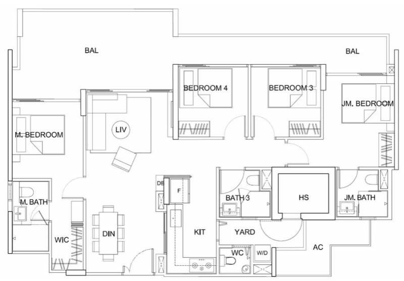 丰阁(Uptown @ Farrer)公寓四卧室户型图