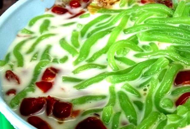 它是一种甜品饮料,以椰浆、绿色粉条,虽然看起来会有人觉得不舒服,但是对于新加坡的晴朗天气,真的是再好不过的清凉选择了。