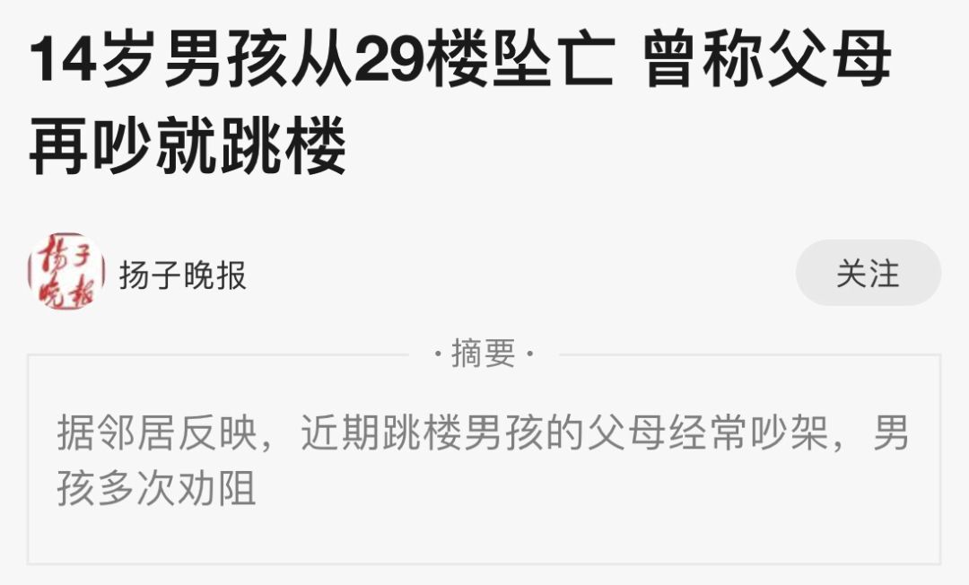 14岁孩子坠楼死亡前求助:爸妈再吵架,我就跳楼!