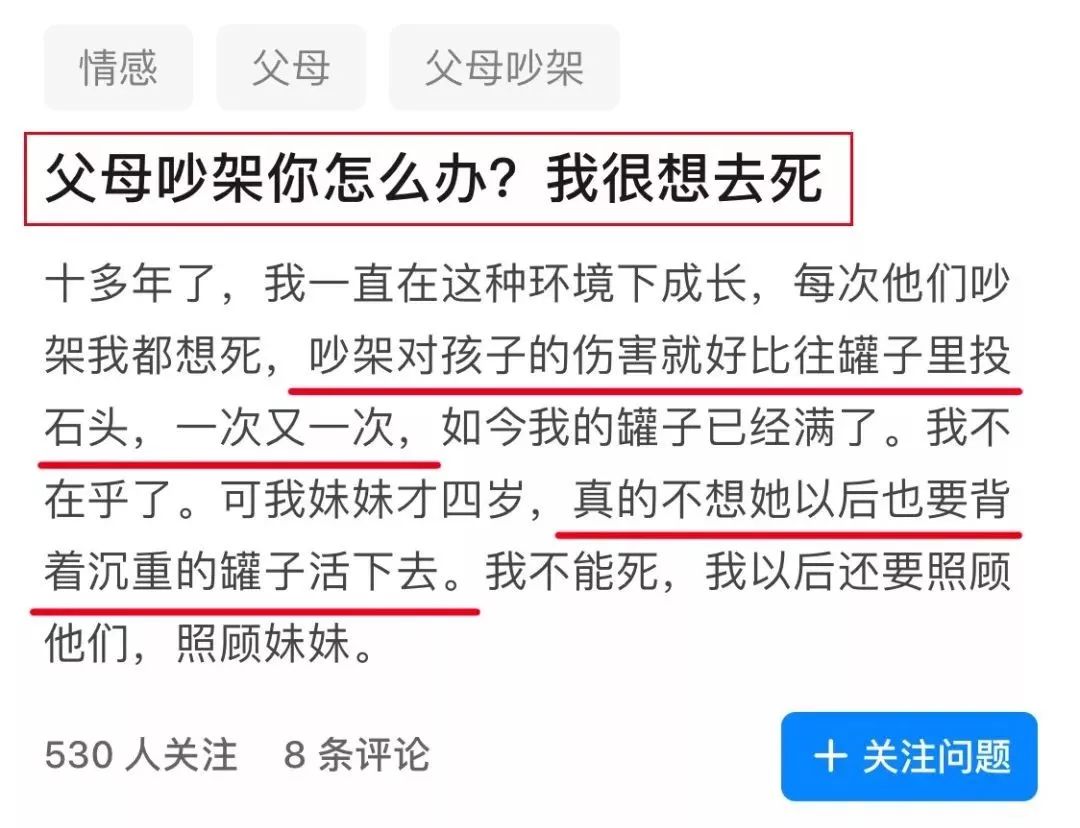 在网上看到一个孩子发帖求助问 —— 父母吵架你怎么办?我很想去死!