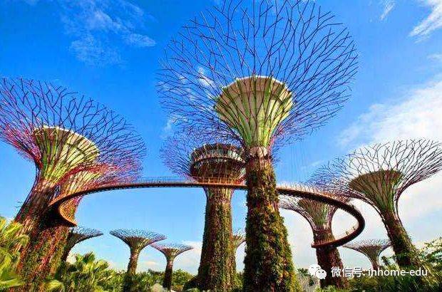 值得一提的是滨海花园内的滨海南花园,建有多棵巨大的超级树,它们其实是一座座16层楼高的垂直花园,你在树顶可以鸟瞰整个花园景色。
