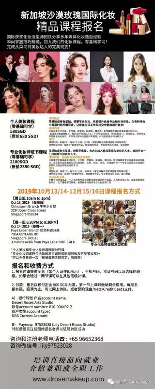 新加坡沙漠玫瑰国际化妆不仅提供个人美妆培训,更专注于专业化妆师的培训。前电视台化妆造型专家团队为大家传授最时尚实用的化妆技术和技巧。