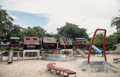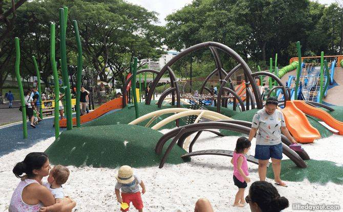 细细软软的白沙子,孩子们还可以带上挖沙工具,堆城堡,赤着脚在沙子上面奔跑。这个游乐园听说还是许多新加坡小学生们放学后必来游玩的地方呢。