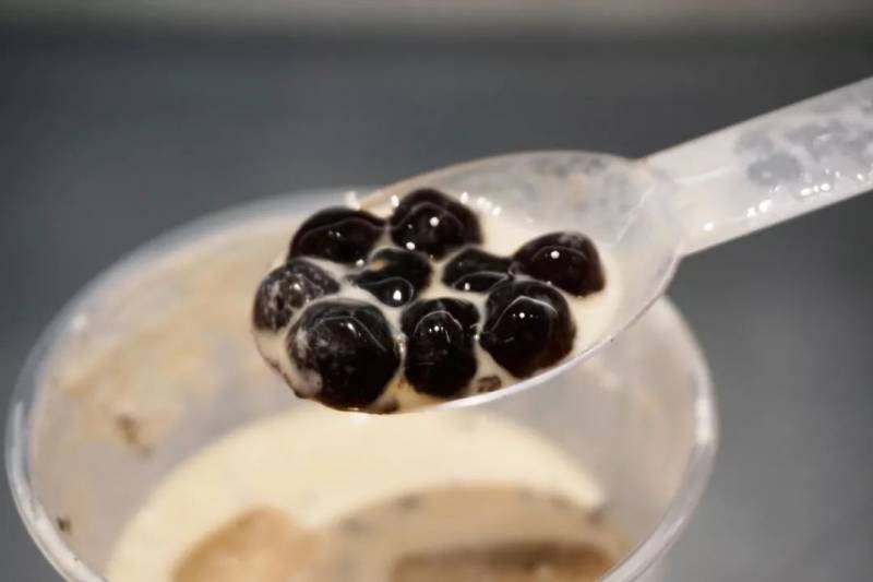 艾粒粒:已经去冰了,但奶味依然很淡,不是很甜,黑糖的味道也被奶冲掉了;珍珠很Q弹,连里面都是甜甜的,很入味。