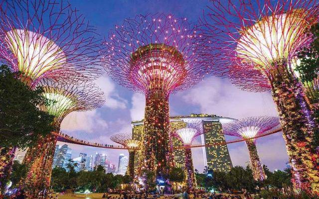 新加坡的夜晚是另一种生活,日落时分,滨海湾花园是整个市中心景观一绝,仿佛置身阿凡达的世界。
