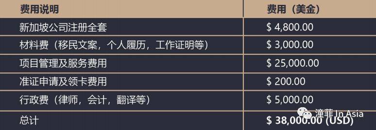 自雇Employment Pass(EP)签证:USD$38,000.00,合同签署后一次性支付
