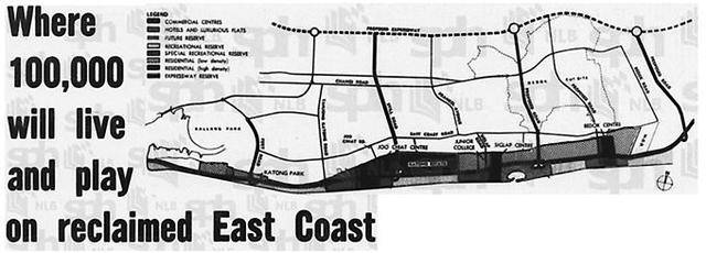 1971年8月8日的《海峡时报》,有一标题为“填海造陆后的东海岸能容纳十万人居住和休闲”,兼有地图说明。