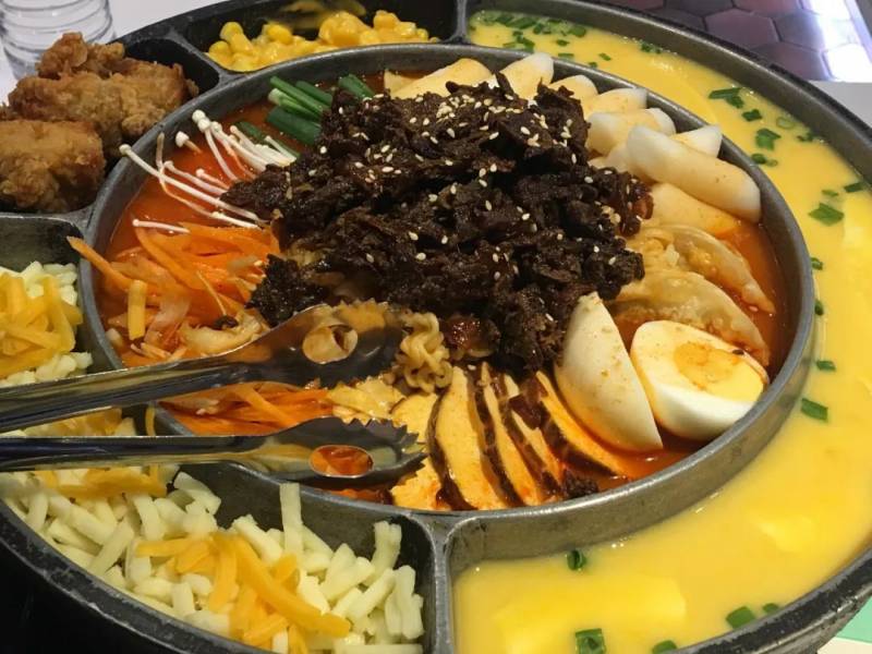 这是一家在乌节路ION里的韩料店。(乌节路那边真的太好逛,在新加坡的一个月我大概得去了五六七八次)这家除了贵没有别的缺点,部队锅和雪糕绵绵冰强烈推荐,三人吃一份套餐足够的。