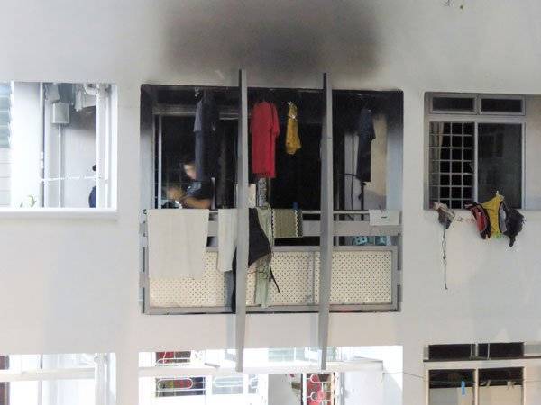 组屋单位起火,所幸邻居发现得早,与房客合力将火扑灭。