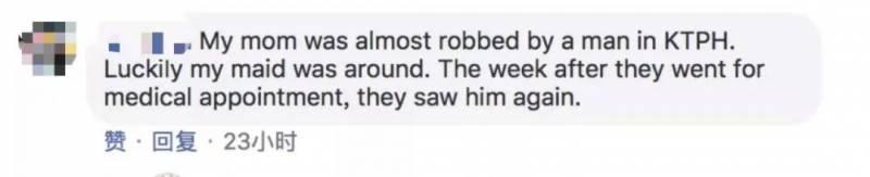 “我妈妈在邱德拔医院差点被一个人抢了 !幸亏当时女佣在旁边。一周后再去医院问诊的时候, 又看到了那个男的。”