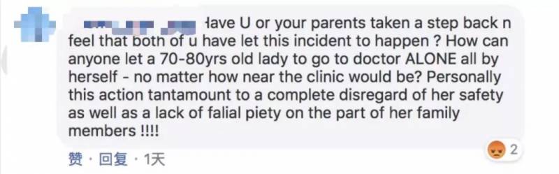 “你或者你的父母有没有反思过,为什么要让一个老人独自去见医生?这不就是在无视她的人生安全?这难道不是不孝顺吗?”