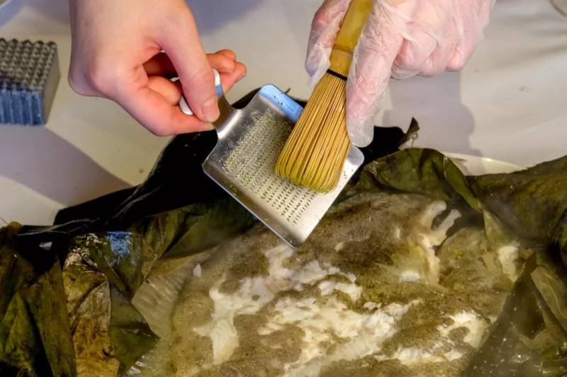 这道盐焗纸包多宝鱼,堪称最神秘的一道菜。