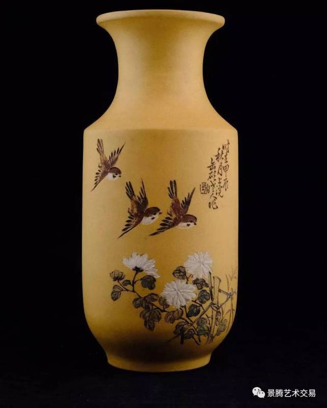 三麻雀白菊花 篱 , "玉琴“做 紫砂涂段泥棒槌瓶