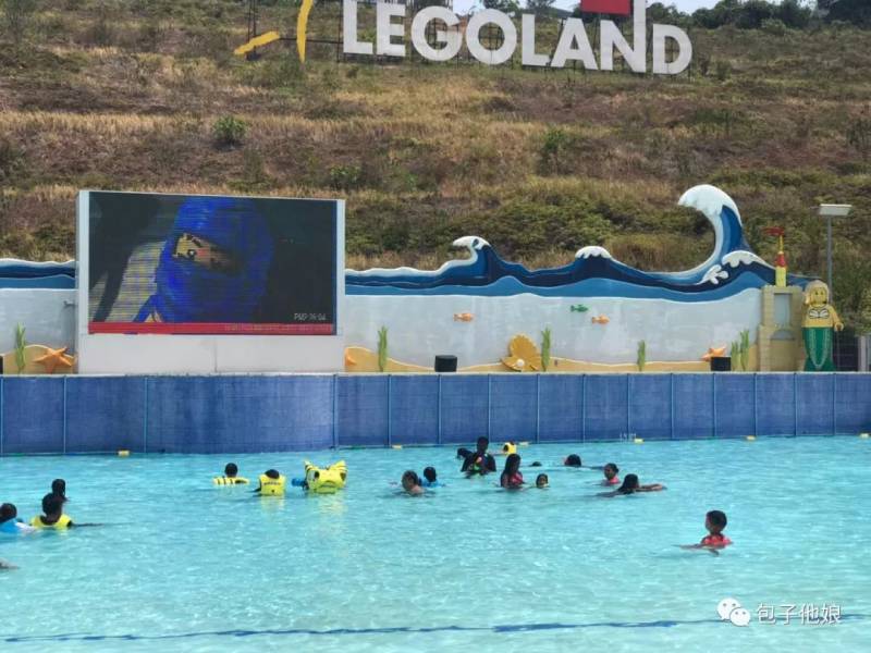 乐高水上乐园没有新加坡的水上探险乐园大,但是因为是和乐高主题相关的,连漂流道里都是乐高积木,还有小朋友自己用漂流道里的积木搭成船漂流,创意满分。不过水上乐园可以玩的比较少,而且比较适合低龄小朋友游玩,我和包子爸都觉得没什么意思,陪着包子在冲浪池玩了三个小时。冲浪池有个大屏幕会循环播完乐高主题的大电影,所以小朋友一边玩水,一边看动画片,迟迟不肯出来。好在这个冲浪池比较浅,而且浪很小,所以我和包子爸就放手让包子一个人玩,我们在边上休息,各得其乐。