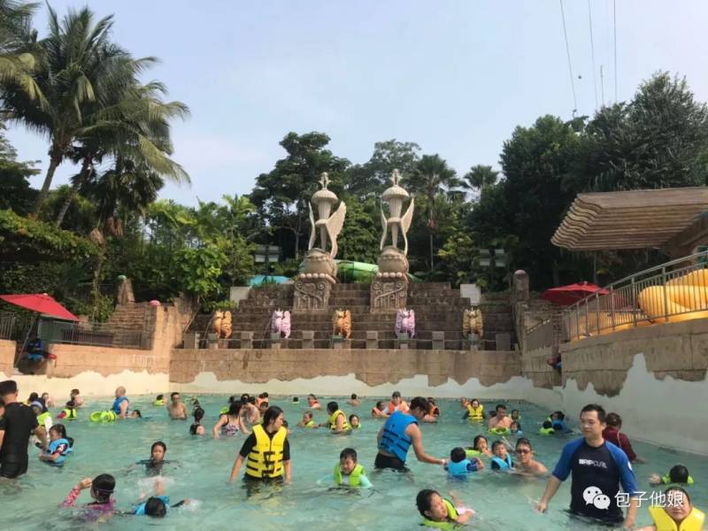游泳池分儿童池和成人池,儿童池很浅,小朋友可以自己玩,成人池水深1米2,年龄小的小朋友必须要父母陪同,否则水边的救生员会不允许下水,哪怕你说小朋友会游泳。成人池边上有几个水球可以玩(免费的),而且有投篮筐,孩子们很喜欢,聚集在那边玩球。游泳池还会分时间段组织一些水上游戏活动。另外,酒店的游泳池边上还有一个类似儿童水上乐园的区域,比较适合3-6岁的小朋友亲子玩,有水上滑滑梯之类的。