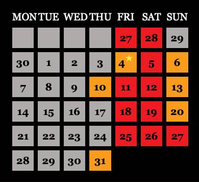 新加坡环球影城万圣节惊魂夜在9月27日至10月31日的指定夜晚举行,分为“高峰日”和“非高峰日”,票价稍有差别。而且,“敢死音乐节”花车巡游只在“高峰日”才能看到哦~