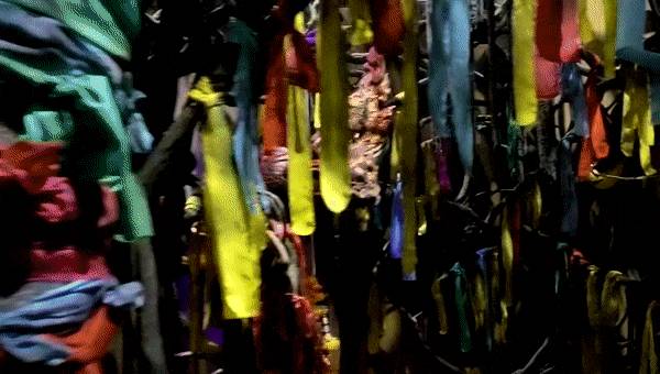 继续缓慢前行,会看到浓浓的烟雾和树上神秘的彩带。