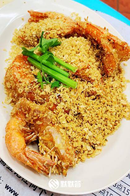 还有新加坡特色菜之一的麦片虾,包裹大虾的不是面包糠,而是带着淡淡奶香和燕麦香的麦片。每只都有巴掌大的大虾粘上麦片,用大火炸得酥脆,热力作用下,麦片的香味完全被激发出来,恰到好处的火候让虾肉还保留鲜嫩的口感。对于我这样懒得将虾壳剥开的人来说,整只大虾放嘴里品尝就最享受不过了!