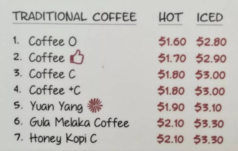 在新加坡,点一杯咖啡或茶可以有以下选择: