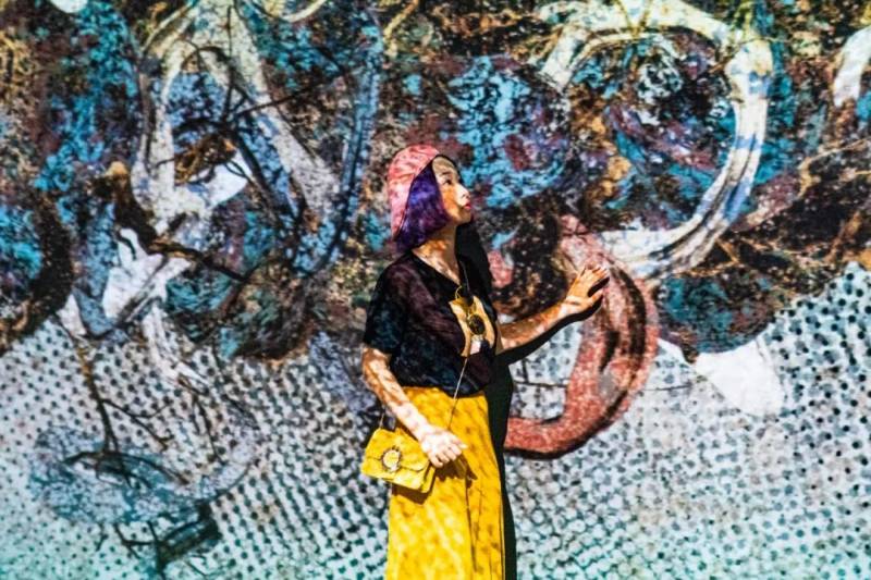 现场有好几个主题的展览,但相同的,是如梦似幻的感觉。有的用极强的视觉冲击让人感受到强烈的震撼、有的用极其有趣的互动方式让人可以参与到展览中去,成为用科学创造艺术的一部分。