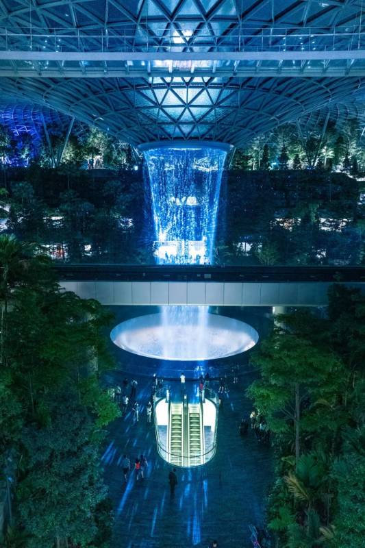 它位于几个航站楼之间,从航站楼步行可达。虽然来之前也看过不少关于它的照片,但真正看到世界上最高的室内瀑布——高达40米的雨旋涡,还是忍不住“哇哦”一声!