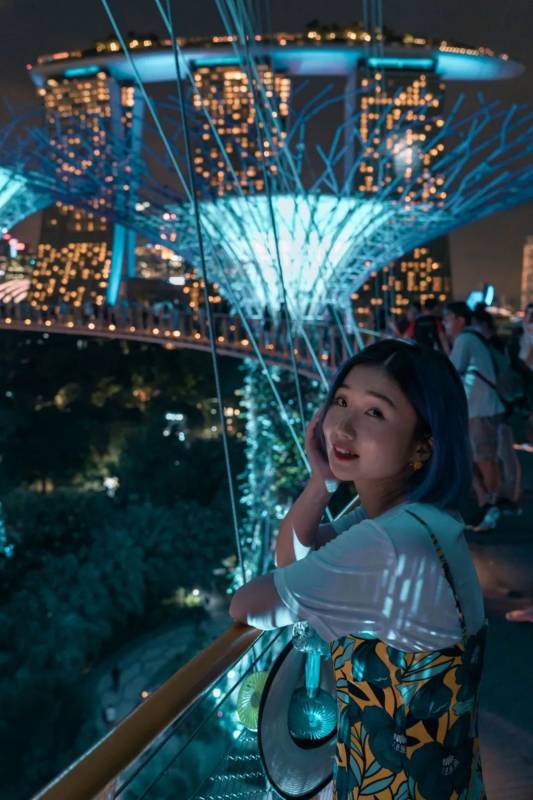 在几棵树之间,有连接着它们的Skyway,走在其中,就好像插上了两只翅膀,飞翔在整座城市闪闪发亮的背景中,美得特别不真实。